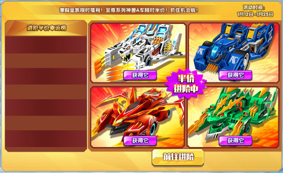 拥有永久幻影神兽赛车即可前往进阶,抓住时机哦!