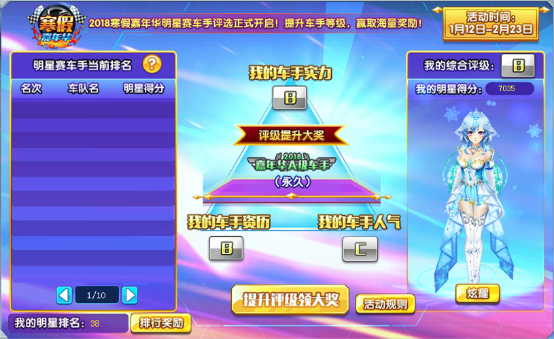 车手的实力得分、资历得分和人气的分值和构成明星得分,根据得分会对车手进行评级哦!评级提升伴有海量珍贵奖励!
