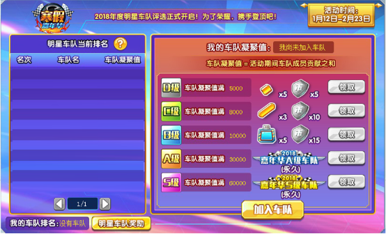 活动期间所有车队成员贡献之和形成车队凝聚值,凝聚值越高,车队排名越靠前!