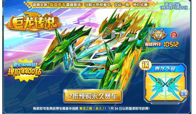 本周限时7折预售,购买即送专属豪华翅膀青龙之翼,下周登陆即可获得!