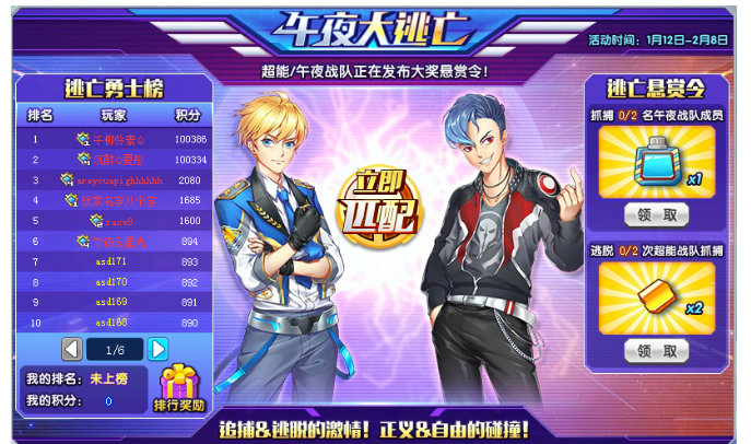 完成每日悬赏令任务,即可领取战队奖励;活动期间冲击逃亡勇士榜还可获得个性专属称号奖励!
