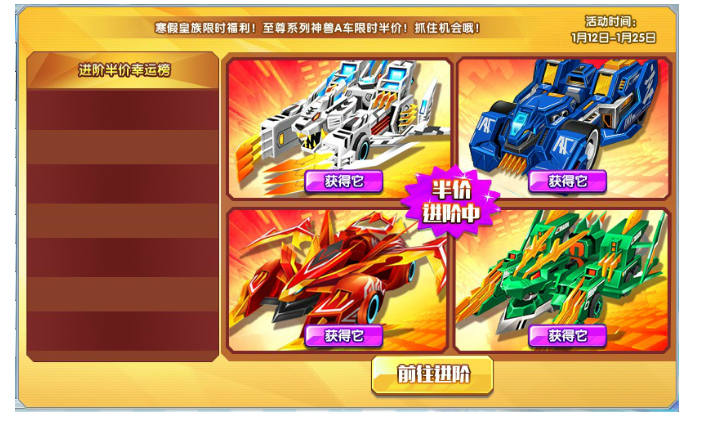 拥有永久幻影神兽赛车即可前往进阶,抓住时机哦!