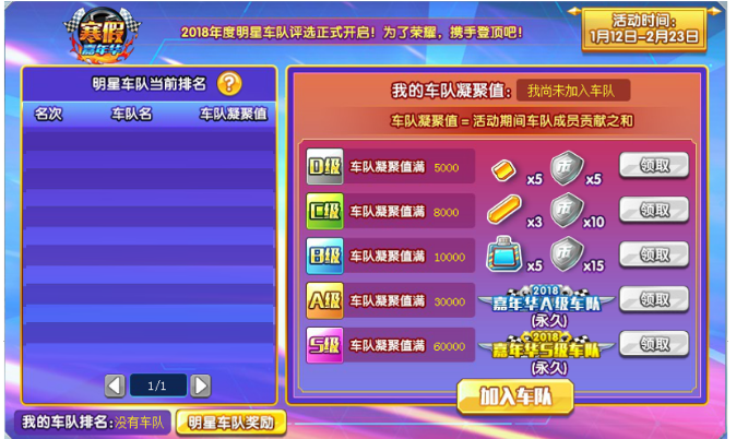 活动期间所有车队成员贡献之和形成车队凝聚值,凝聚值越高,车队排名越靠前!