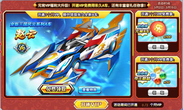 开通3个月VIP,更可直接免费领取永久新A车赵云!