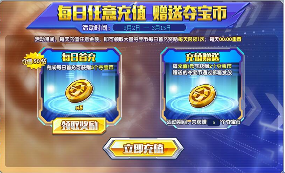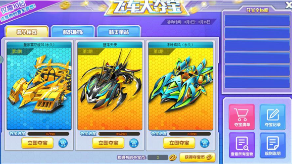 充值后记得领取夺宝币开启你的飞车夺宝之路吧,豪华X车在等你!