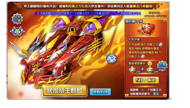 帝王麒麟限时福利开启,超值四象之力礼包火热发售中!