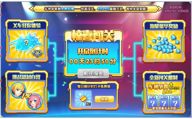 车神争霸赛全玩法——惊喜闯关,4月29日震撼开启,等你探索!