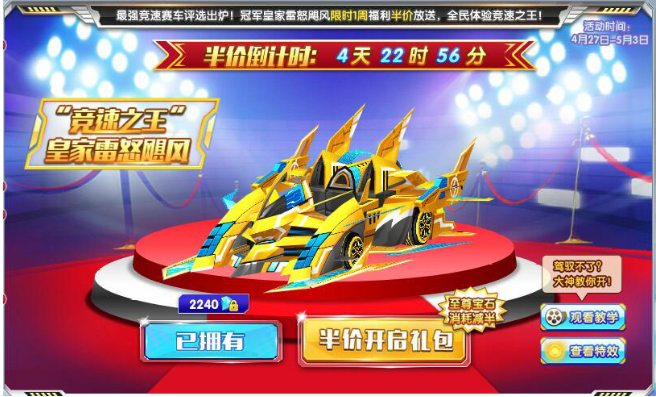 冠军皇家雷怒飓风限时1周福利半价放送,全民体验竞速之王!