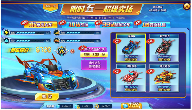 4辆豪华A车极限优惠,仅需308钻即可带走永久A车!