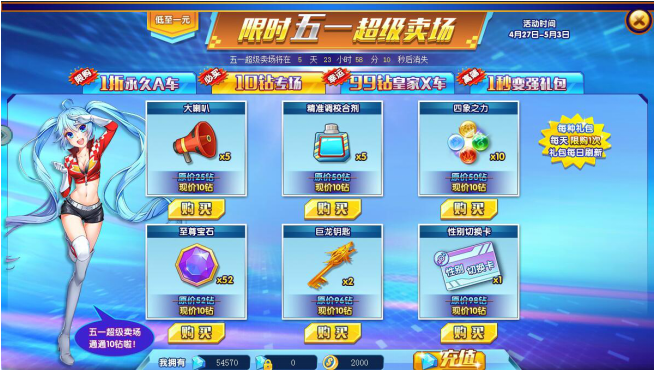 欢迎来到限时五一超级卖场——10钻精品限时专场!