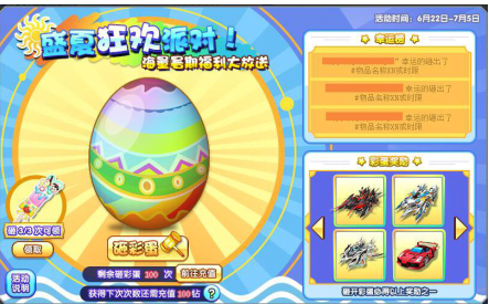活动期间每充值100钻即可获得1次砸彩蛋机会,绝版豪华皮肤、各种精美道具通通藏在彩蛋中等你来拿哦!