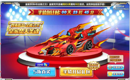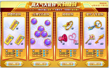 6.22-7.5期间充值过皇族VIP的赛车手,即可享受充值专属价购买礼包!