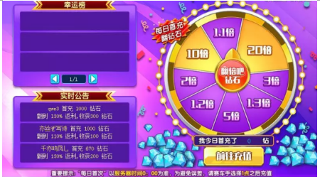 7月13日-7月19日,每日首次充值都可开启超级翻倍转盘!将你充值获得的钻石翻倍!