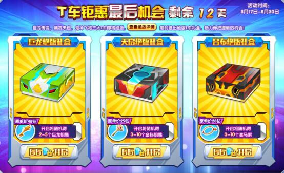 8月17日——8月30日期间,我们将推出限时绝版T车礼盒,帮助各位赛车手在绝版之际,拿到自己心仪的T级赛车。
