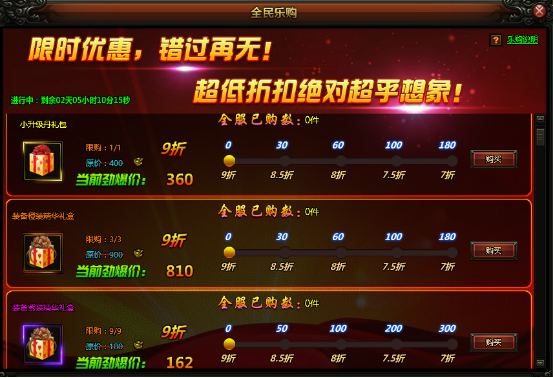 1、活动期间可参与购买低价珍惜道具,且拥有限购数量。