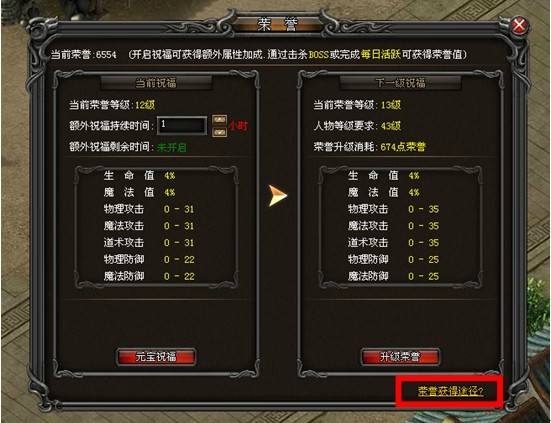 玩家可以通过击杀BOSS或完成每日活跃等方式获得荣誉值,提升荣誉等级。