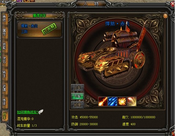 成功制作战车后,玩家可以在人物界面的战车标签页查看自己的战车状态,选择出战的战车。