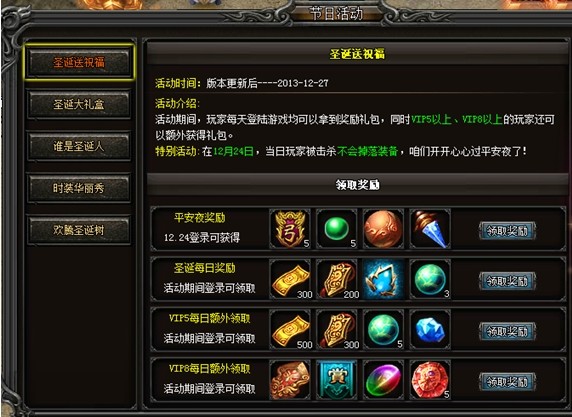 浪漫圣诞全服狂欢,五大活动赠送大量好礼哦!活动时间及活动内容请查阅官网;