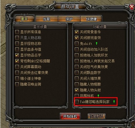 开启后玩家按TAB切换目标时不再自动选取其他玩家。方便玩家打怪打BOSS更容易选中怪物。