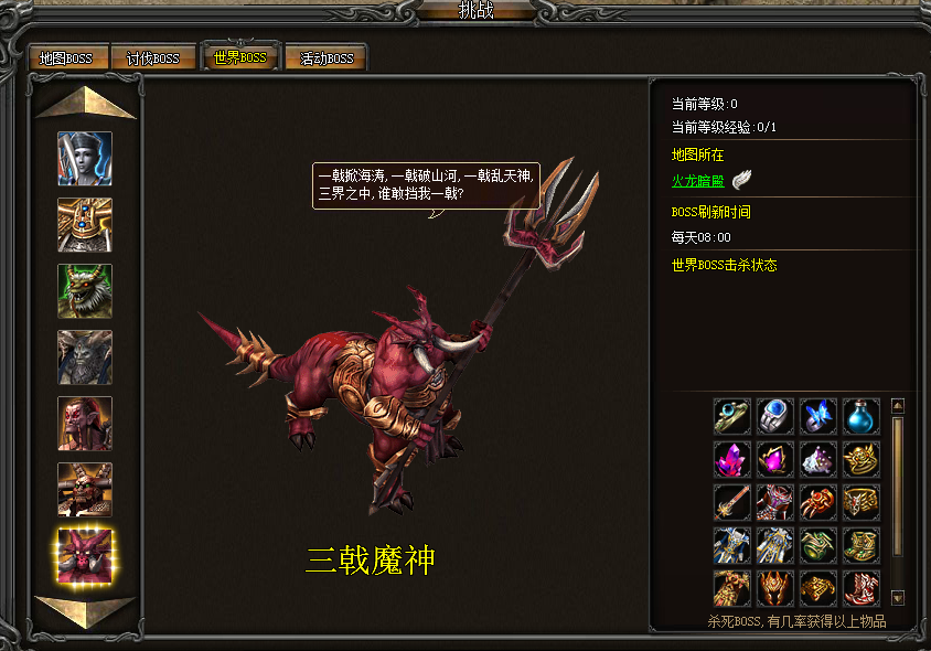 5、 修复了个人讨伐BOSS火龙之王和冰宫魔王左侧显示信息错误的问题;