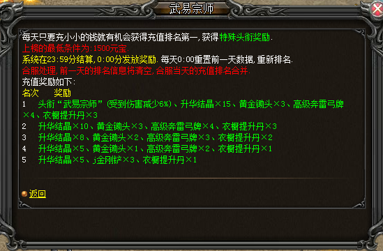 3、 武易宗师NPC每日充值排行榜说明增加奖励描述,描述更直观;