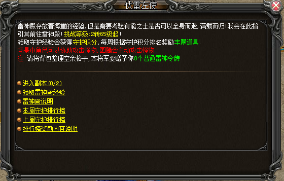 4、 伏雷左使NPC对话新增雷神殿守卫积分描述;