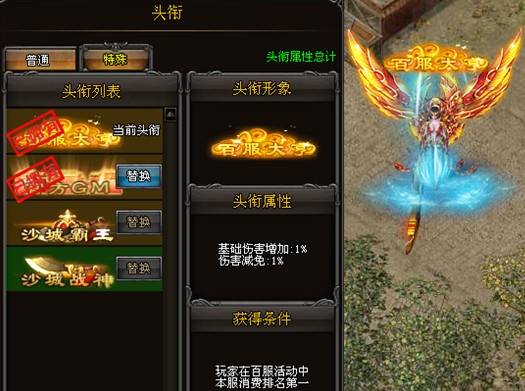 百服消费排行第一奖励:屠龙装备碎片、百服大亨头衔