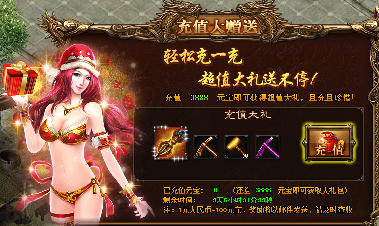 活动详情:轻松充一充,超级大礼送不停。玩家在活动期间达到充值数额就能获得大奖!