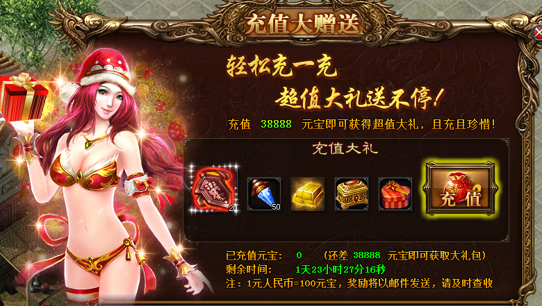 活动详情:轻松充一充,超级大礼送不停。玩家在活动期间达到充值数额就能获得超值大奖!且充且珍惜!