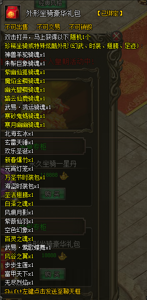 外形坐骑豪华礼包(双击获得其中随机1个):