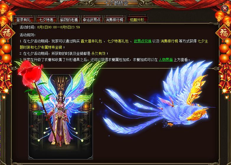 1、新增七夕主题活动,豪华礼包登录即送,更有特惠礼包、专属时装以及酷炫坐骑与你共度佳节!