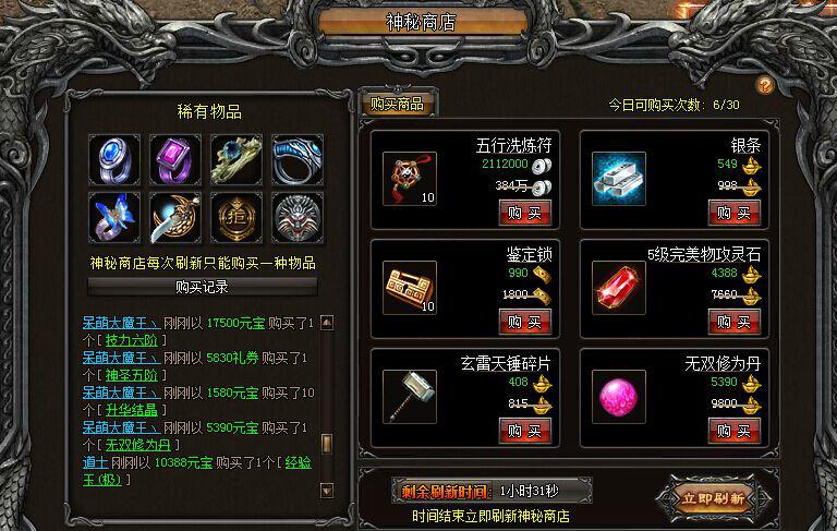 好消息!《武易》神秘商店限时开启,商城物品超低价促销啦!你所喜爱的高级道具在神秘商店中打折限量出售,如此优惠的价格,作为一个精明的消费者你又怎能错过这千载难逢的好机会?