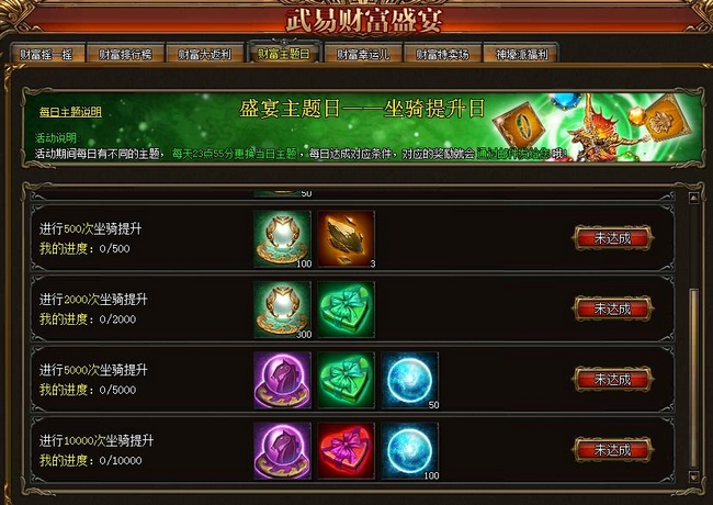 活动详情:活动期间,每天对应一个主题提升日,每个主题日有各种提升目标,达到目标指定值后,奖励通过邮件直接发送。
