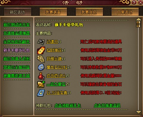 【活动内容】只要玩家达到特定的等级,就可以领取系统赠送的豪华大礼。