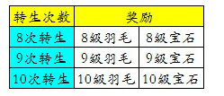 活动内容:转生达到对应次数可以领取奖励,每个玩家只能领取一次!