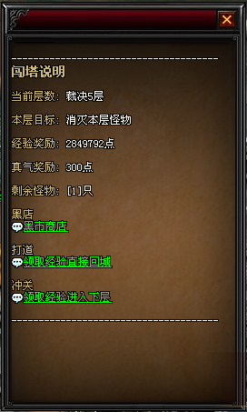 - 击败BOSS可以获得大量经验及灵气,并有概率掉落转生石,获得进入下一层的资格;
