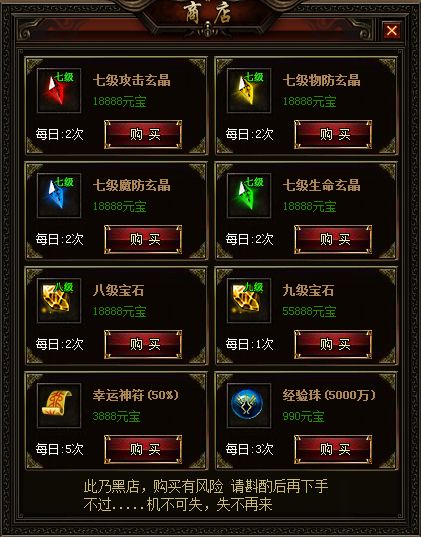 道具有限购次数,次日重置。