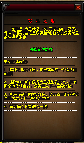 - 每层限制时间为3分钟,被BOSS击败或者超过时间未进入下一层视为失败;