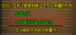 点击“兑换天书碎片”,即可将包裹内的天书精华兑换为天书碎片。