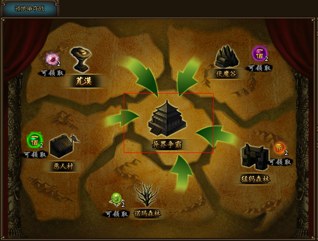 领地争夺战积分第一行会等级≥70级的玩家均可参与跨服战,玩家通过领地争夺战界面传送进入异界地图。