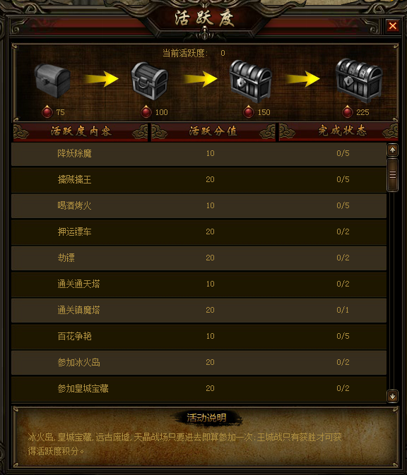 玩家每日领取完所有活跃度宝箱后,该图标消失。
