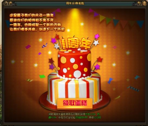 在周年庆期间,龙城会刷出超大周年蛋糕,只要点击蛋糕就可获得超值BUFF。