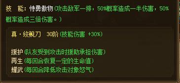 武将:华雄(刚毅的外表,证明他是一个真男人,拥有援护的专属技能,更是可以保护队友免遭貂蝉等普通攻击减怒气的荼毒,我挡,我挡,我再挡!专属技能耀武:从第二回合开始,每回合减少攻击对象50点怒气更是敌人噩梦般的存在!不要以为我只是个肉,三倍技能伤害会让你哭!!)
