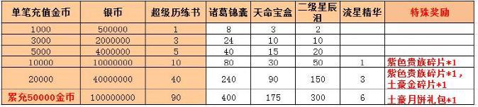 活动内容:活动期间,玩家每日充值满100金币,都可以获得首充礼包一份。