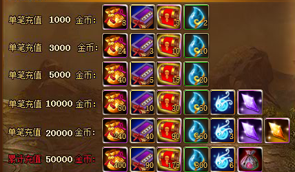 活动内容:活动期间,游戏内开启单笔充值活动,玩家每单笔充值一定金额,即可获得相应的充值奖励。