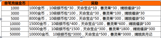 活动内容:活动期间,游戏内开启单笔充值活动,玩家每单笔充值一定金额,即可获得相应的充值奖励。还有女神武将嫦娥等你来“娶”哦!!!