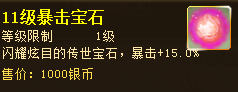 1、本周为小伙伴们带来的是传世宝石,11级暴击宝石的镶嵌给战力带来了无限可能。