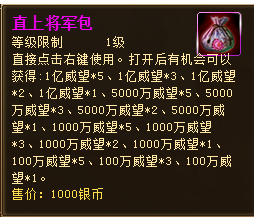活动奖励:直上将军包,大量银币,聚魂幡,铸魂石,超级历练书,天命宝盒,出师令!