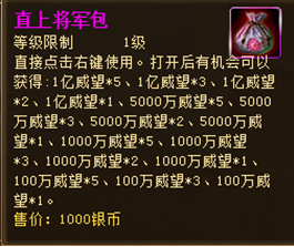 活动奖励:直上将军包,大量银币,聚魂幡,铸魂石,超级历练书,天命宝盒,出师令!