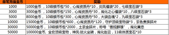 活动内容:活动期间,游戏内开启单笔充值活动,玩家每单笔充值一定金额,即可获得相应的充值奖励。